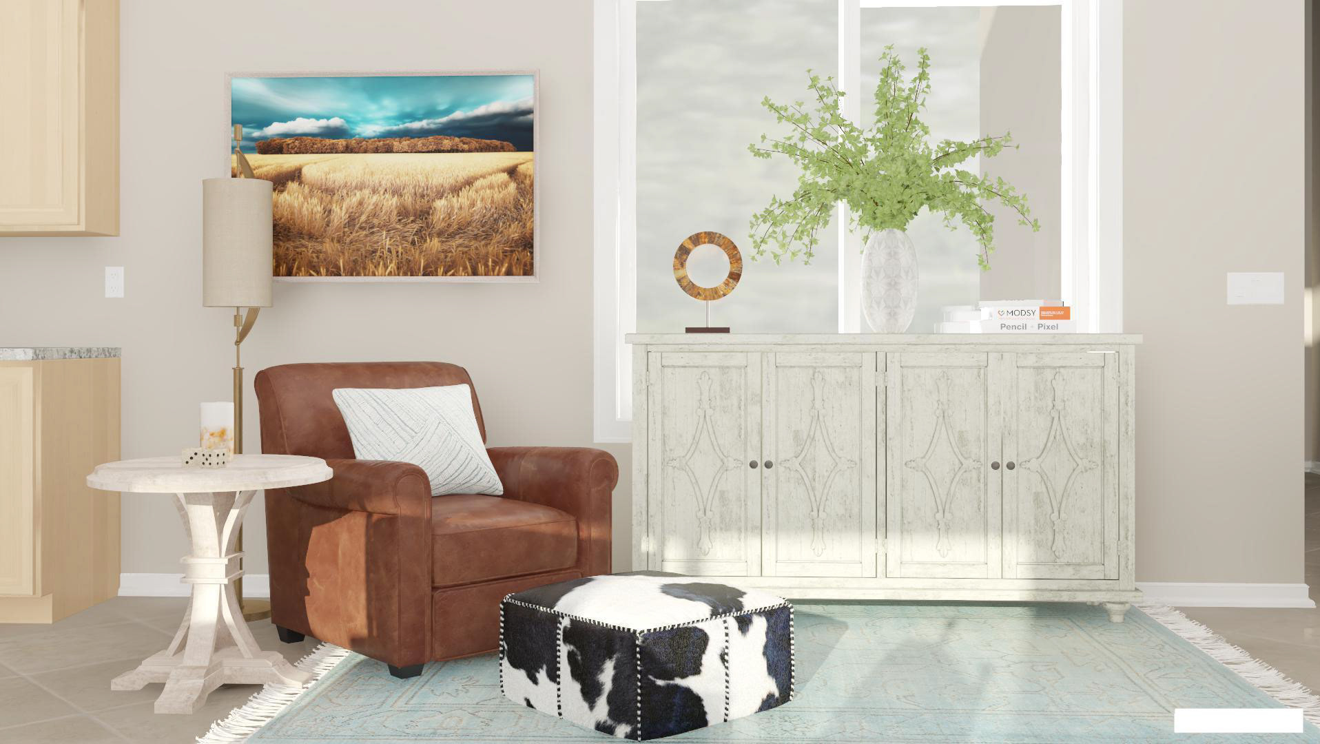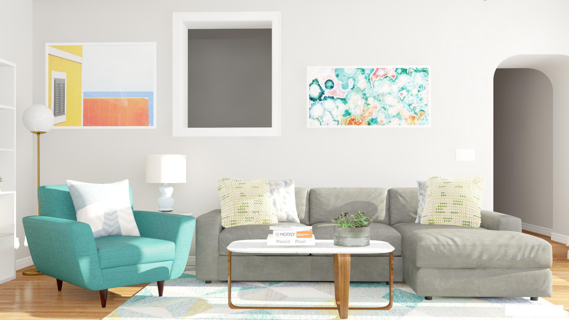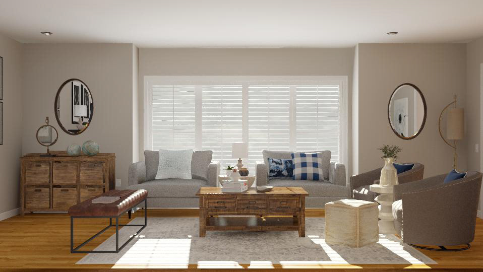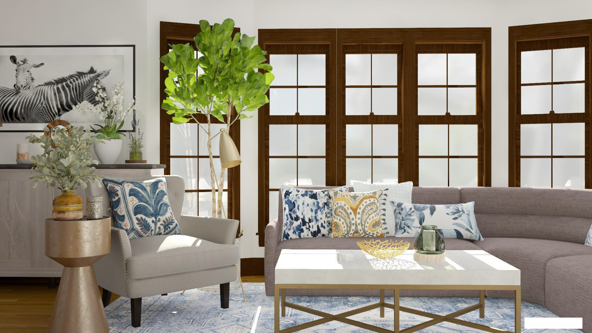 MID-CENTURY MODERN + TRANSITIONAL LIVING ROOM