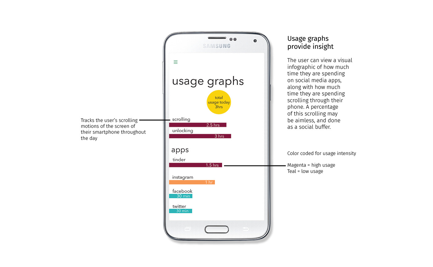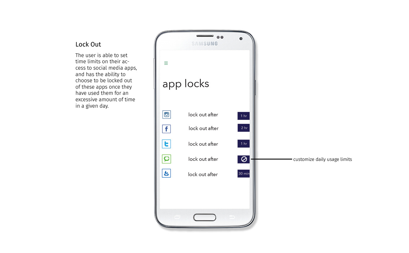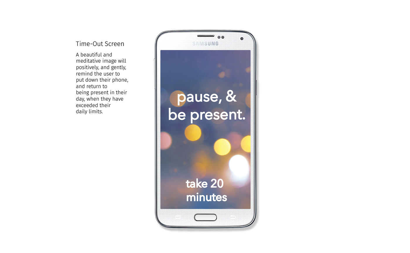 Present is a social presence and productivity app to combat technology addiction. It tracks the amount of overall time users are spending on their smartphones and social media apps, and gives them the option to limit this time and become more present in their day, and to become more socially present without using the phone as a social buffer or a crutch, as mobile phones have increasingly become.
